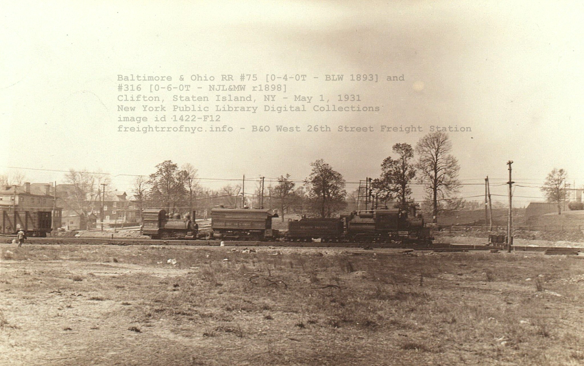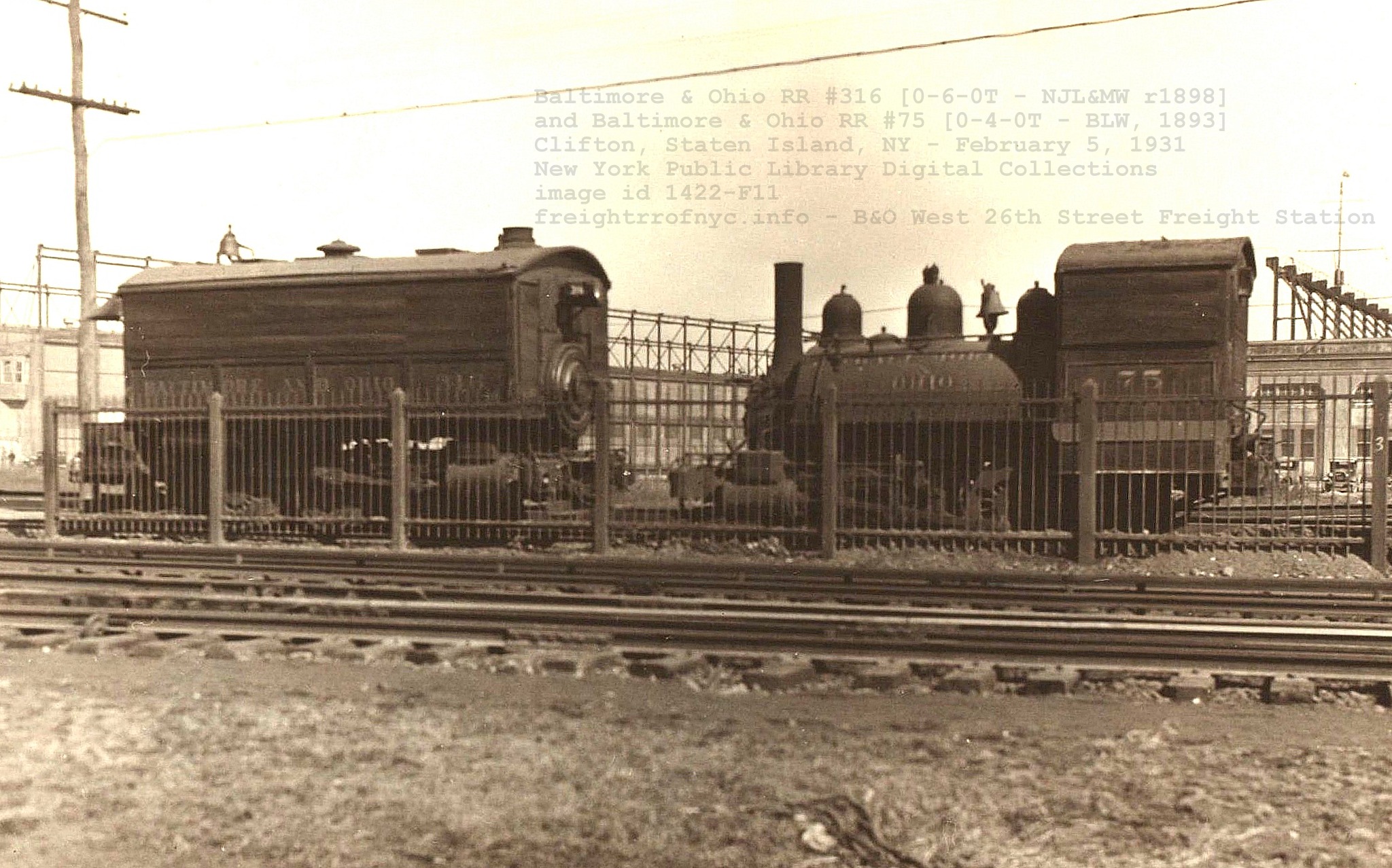 So, thanks to Ed; we now have another steam locomotive confirmed to have operated at the Baltimore & Ohio West 26th Street Freight Station! This however raises the question, why is #75 at this location, if #316 was built specifically for this location.