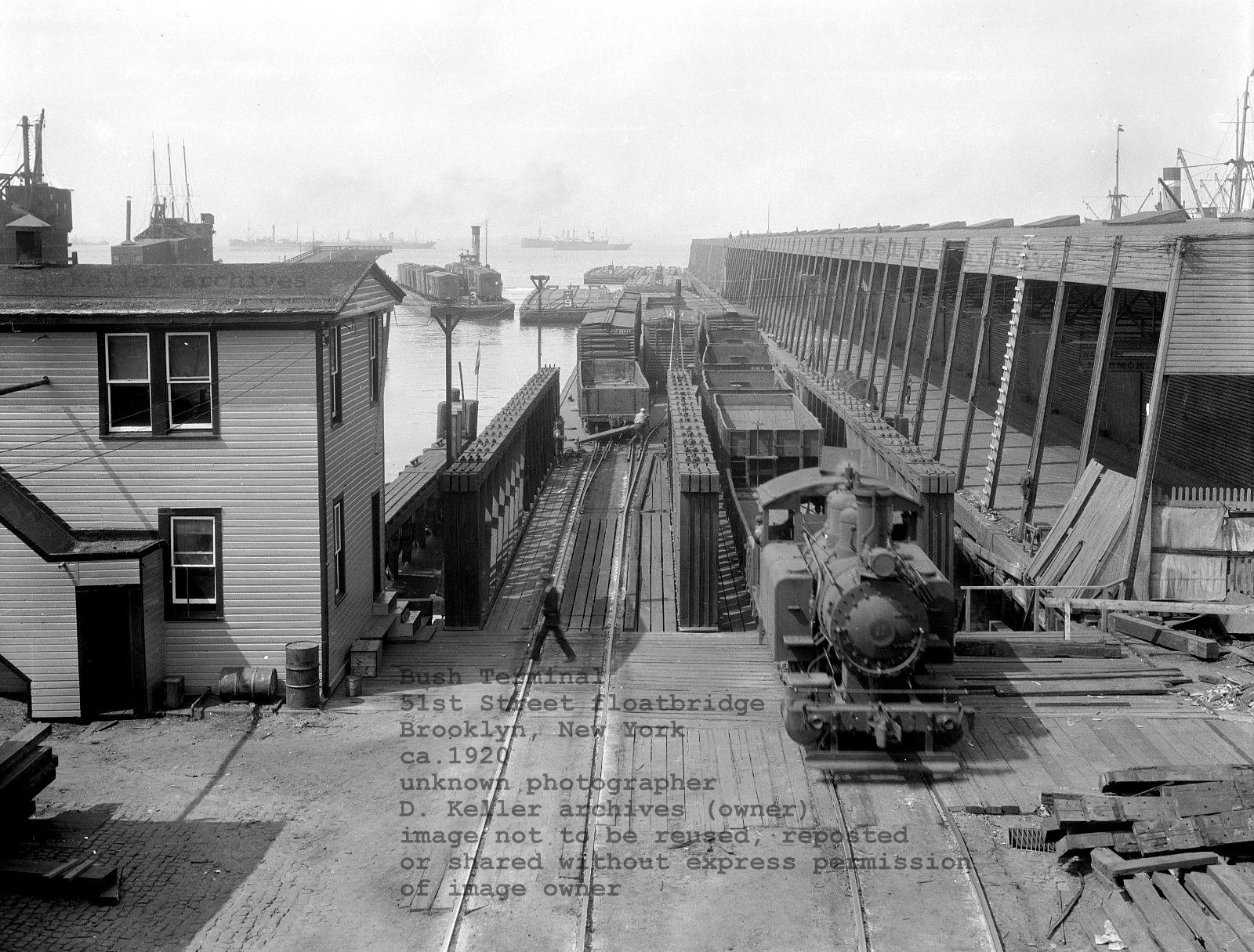 Around 1912, when the present location of the current float bridges was selected at the foot of 50th Street, and those float bridges constructed, Pier 6 would be reconstructed into a closed piershed with internal trackage, but without a float bridge: