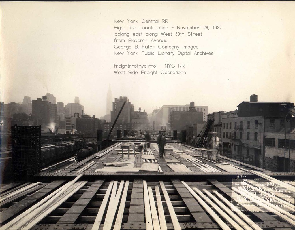 ![]() High Line - parallel to West 30th Street, by Eleventh Avenue - April 1957 J. Shaughnessy image |