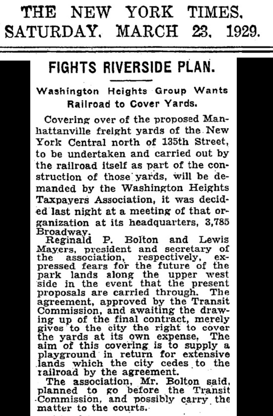 | New York Times article compilation of West Side Improvement - Riverside added | 10/19/2025 | Back to the West Side Improvement Project - Riverside Park 1929-1934 |