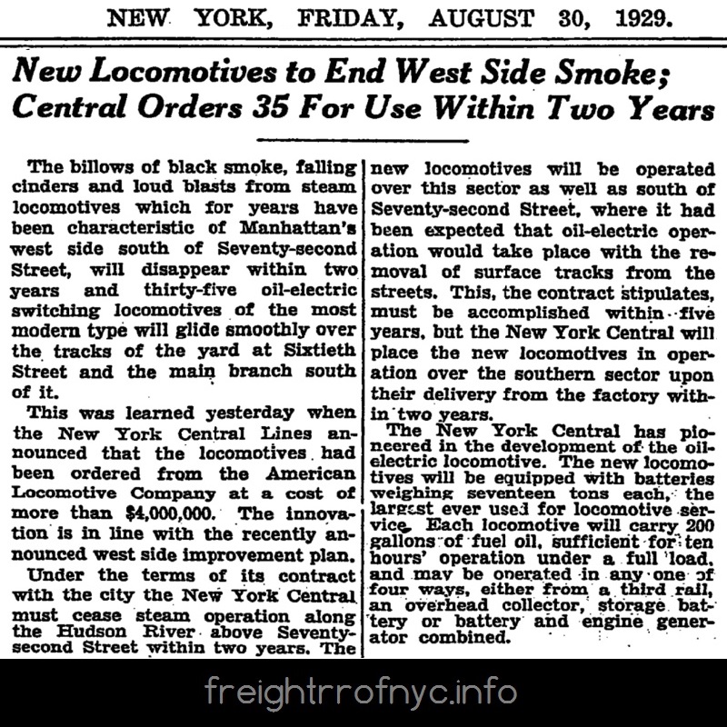 | electric operation to West 30th Street, switching and service south of West 30th Street by diesel electric. |