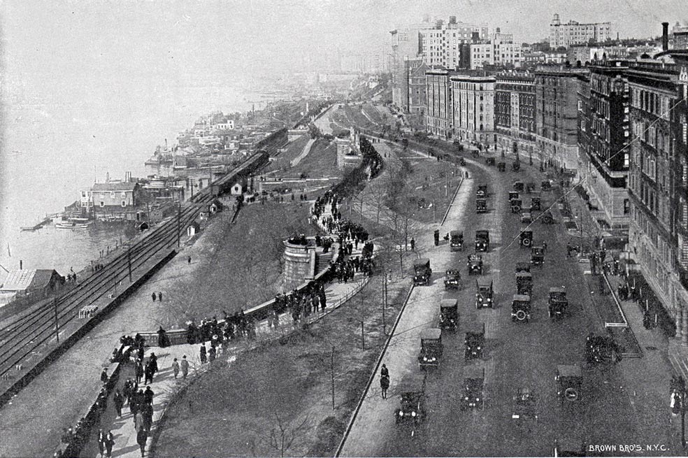 Note that in the following two images, the tracks are significantly lower in elevation than that of the buildings. It was not like the trains were at their front door like in Hell's Kitchen or Chelsea. Also, when the trees were in bloom, the sight line changed, blocking more of the railroad from sight. Apparently this was not enough. ![]() Riverside Drive looking north from West 74th Street - 1910 Library of Congress added 19 October 2025 . ![]() Riverside Drive looking north from West 145th Street - 1911 Library of Congress added 19 October 2025 ![]() ![]() . 1917