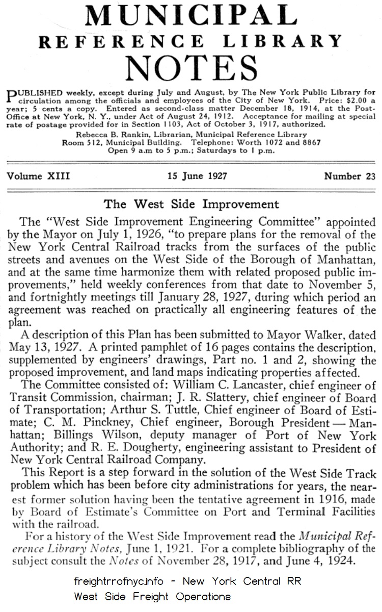 As I pour over documents and the more I witness; the railroad (as greedy as railroads could be) was really at the negotiating table trying to make the West Side Improvement Project(s) work. With every change of City and / or State administration however, the politicians wanted more "givebacks" by the railroad and less "give in's" by the City. This is to say nothing of how the City of New York was going to finance their share of the improvements. As a result, many different plans were put forth over that period of time from 1909 through 1920. Some within reasonable expectations, some purely in outer space. . . 1920