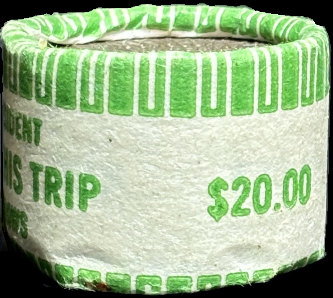 On a whim, I reproduced the .50 cent and 1.00 Wheel wrappers and filled them with the appropriate issue of tokens, so keep in mind those "complete" rolls that appear below are re-creations, not authentic, but that .75 cent partial roll is as original and authentic as can be! So, this discovery now leaves me with the question; did the 29mm .75 cent Wheel token retain the same wrapper design as its 26mm predecessor as seen below, or does an as yet unseen wrapper design exist?