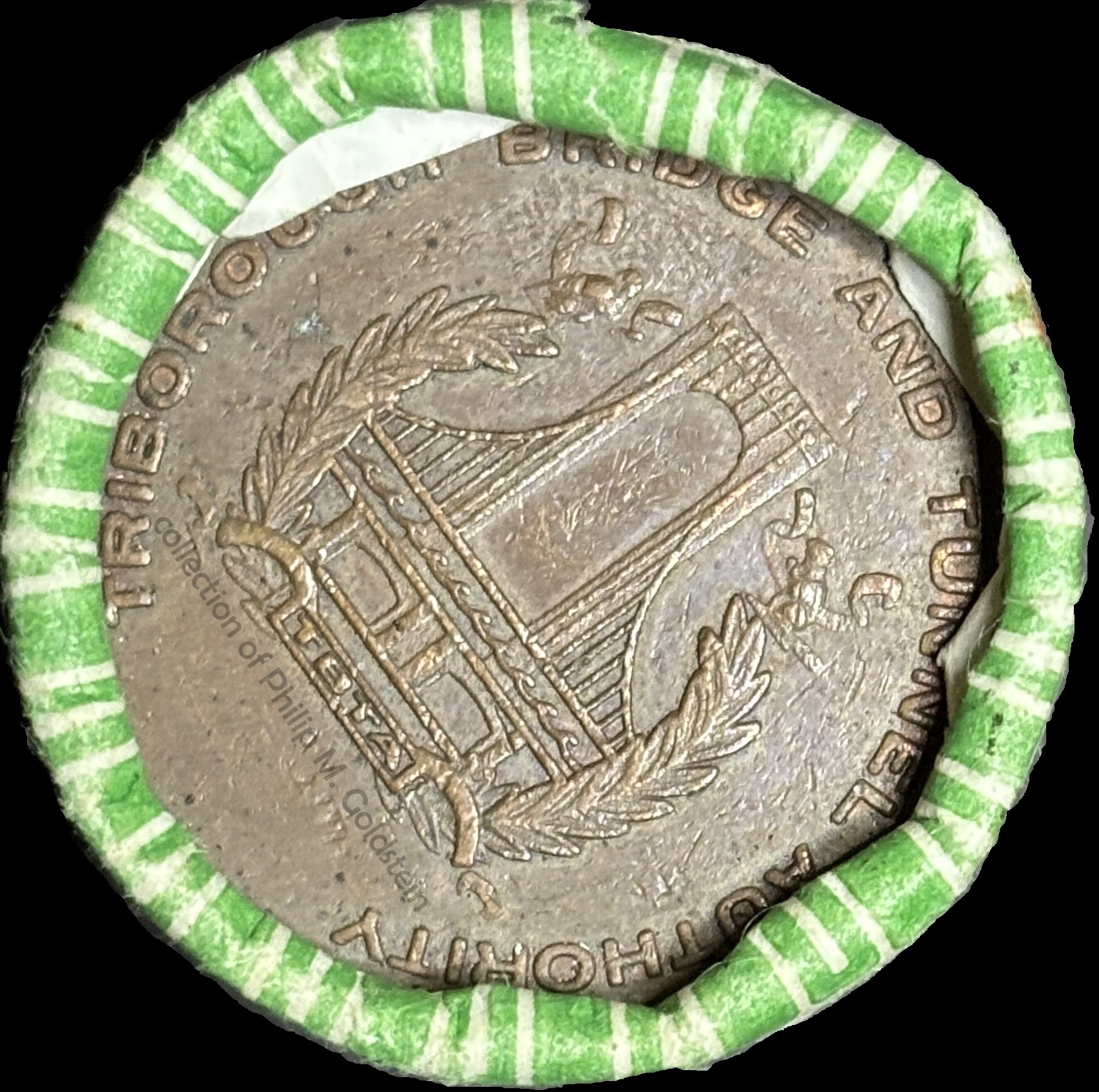 Loose TBTA Tokens are the most common issues out of all of the toll memorabilia. At any given time, you can find dozens if not hundreds of individual circulated examples for sale on eBay. Minimally to uncirculated tokens and early intact rolls or wrappers are another matter. Intact rolls of the smaller later issues (1987 and newer - rolls of 9 10, or 11) of "the List" tokens (NY630BC and BD) however appear very frequently, and can also be found regularly on eBay. The older, larger quantity rolls however are seldom seen; and to date. Furthermore, I have not encountered a single "plastic bag of 20 tokens" as mentioned in the 1976 newspaper article. When you consider the fact that as the tolls increased from the point where a single dime or quarter would no longer cover the toll, increasing amounts of individual coins were needed to pay the collector (two quarters, two quarters and a dime, three quarters, etc. or the time it required to make change from currency. These transactions took longer and traffic built up at the tolls. By having tokens denominated in the basic fares for the Triborough Crossings and already prepackaged in rolls, was expected to alleviate this lag time at the toll booths; and it did. As it is stated in the Hearings before the Subcommittee on Surface Transportation of the Committee on Public Works and Transportation; House of Representatives - Ninety-Fifth Congress; (September - October 1977) "In