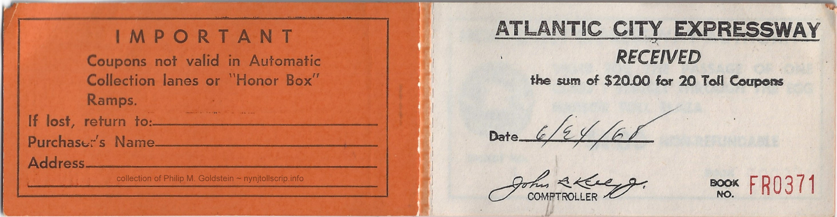 Atlantic City Expressway - One Fare - 1970