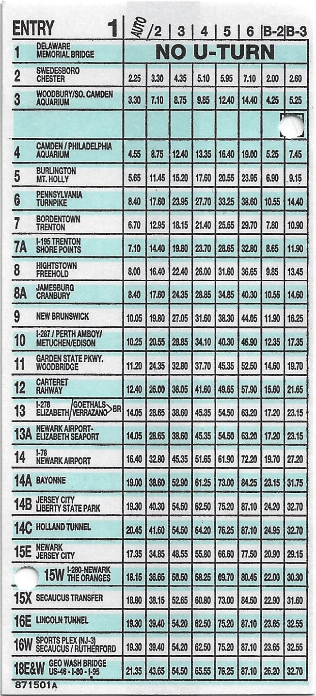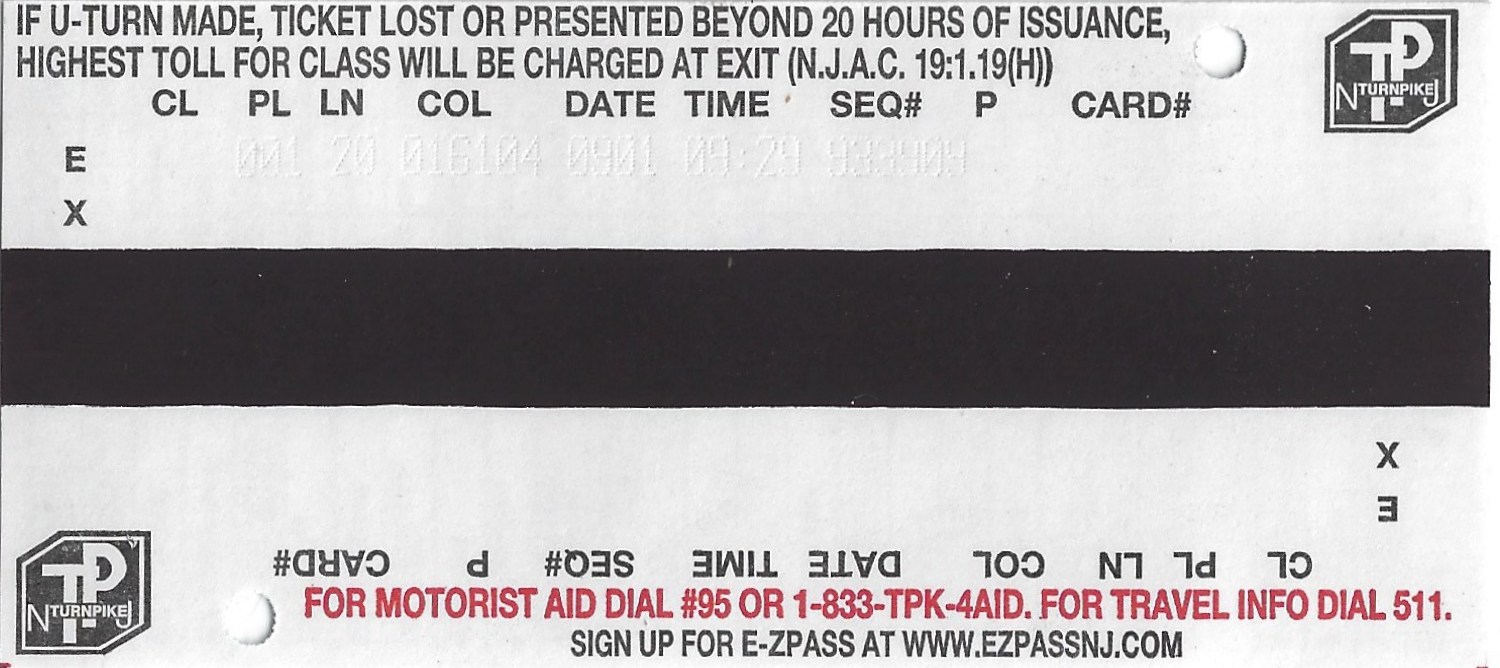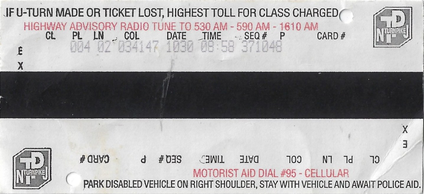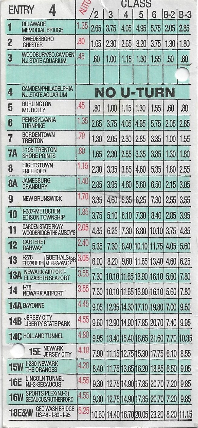 issued for the New Jersey Turnpike and appears frequently on eBay. Dates reflect